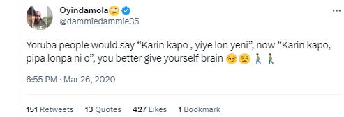 The Yoruba proverb "Karin kapo, yiye lon yeni". Is it legit or not? Let's find out.