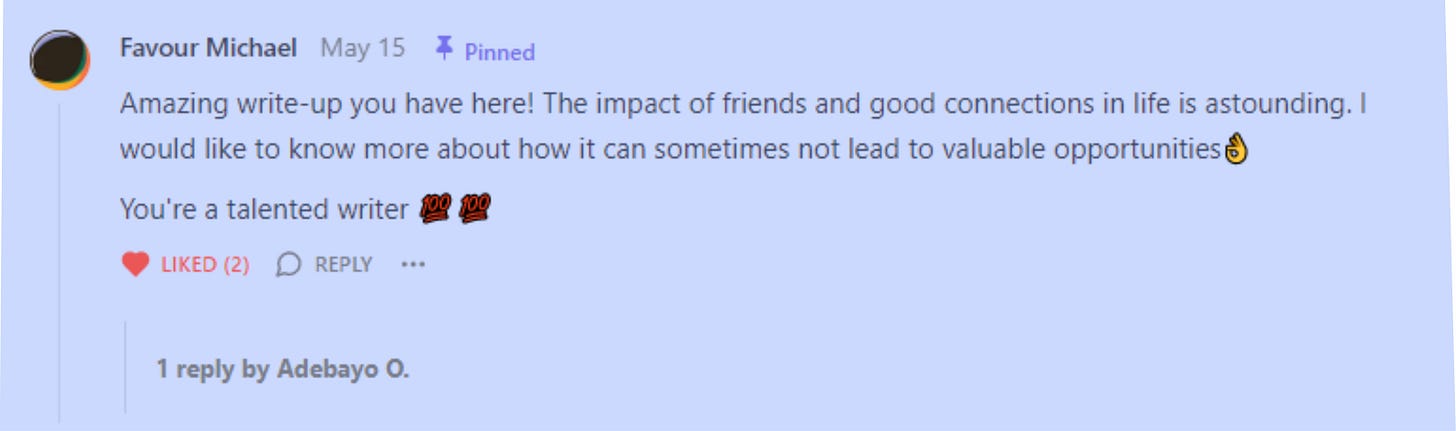 “Amazing write-up you have here! The impact of friends and good connections in life is astounding. I would like to know more about how it can sometimes not lead to valuable opportunities👌.You're a talented writer 💯💯”Ladies and Mentlegen and everyone in between I will be sharing my three and half cents on this topic because why not. But before we dive in, let me give you a quick background story. So, there's this article ‘…on relationship.’ that discusses the perks of having friends, why we shouldn't be loners, and all that good stuff. If you're curious, go ahead and check it out for the juicy details. But hey, enough of the formalities, let's get this party started, shall we?